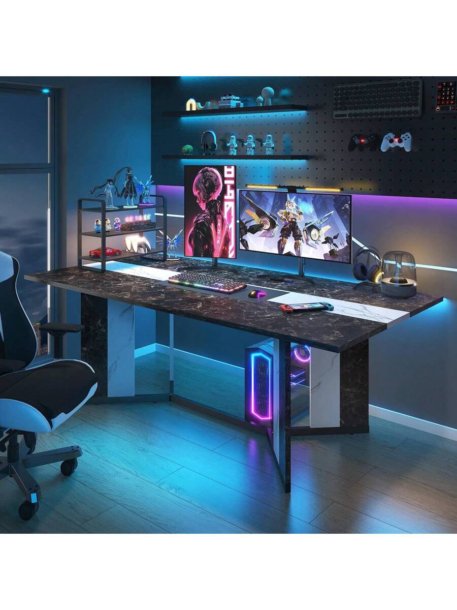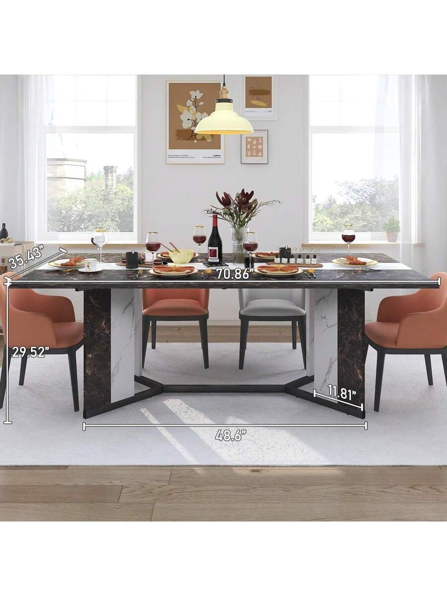 71" Large Luxurious Rectangular White Dining Table For 6 8 10 People W/Marble-Color Wood Tabletop,Metal Adjustable Leg.Modern 6ft Family Dinner Table For Rustic Office Kitchen Living Room
