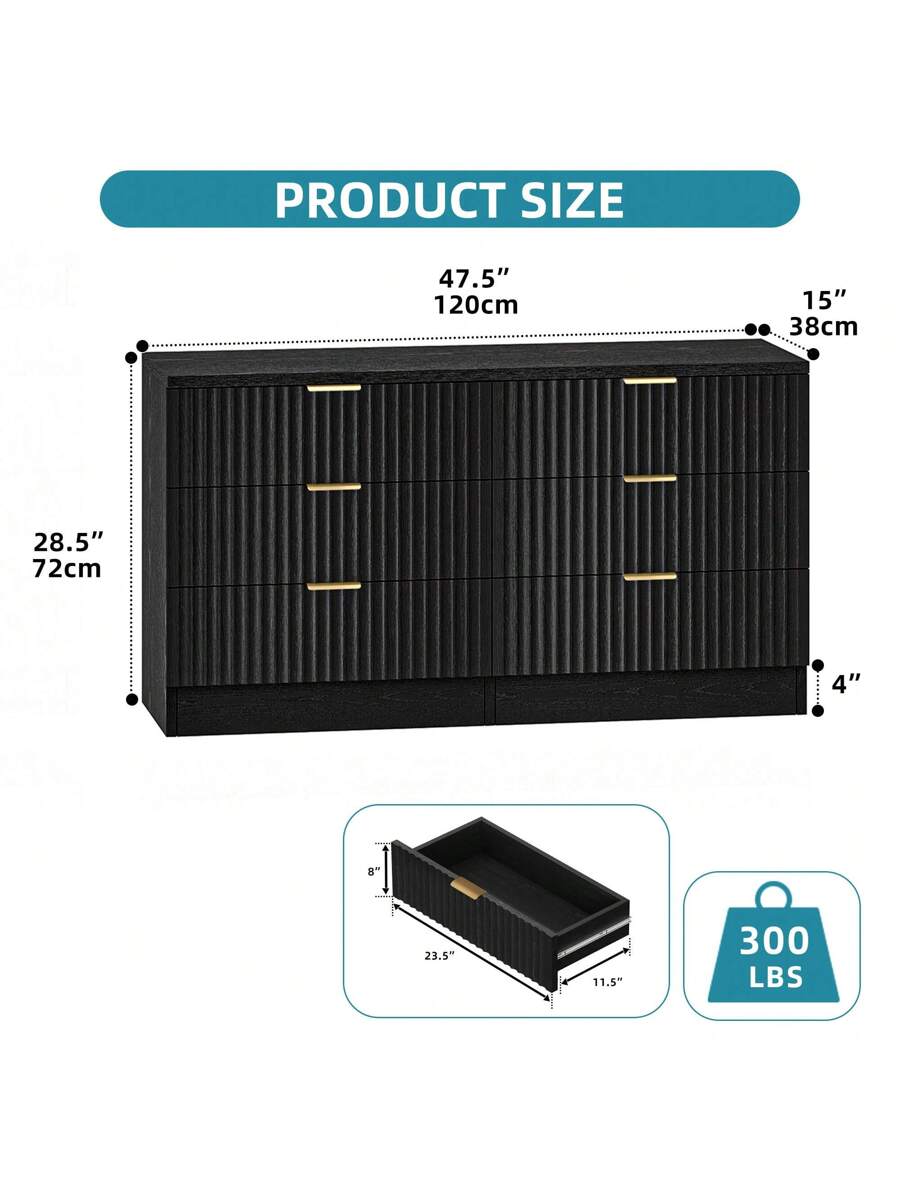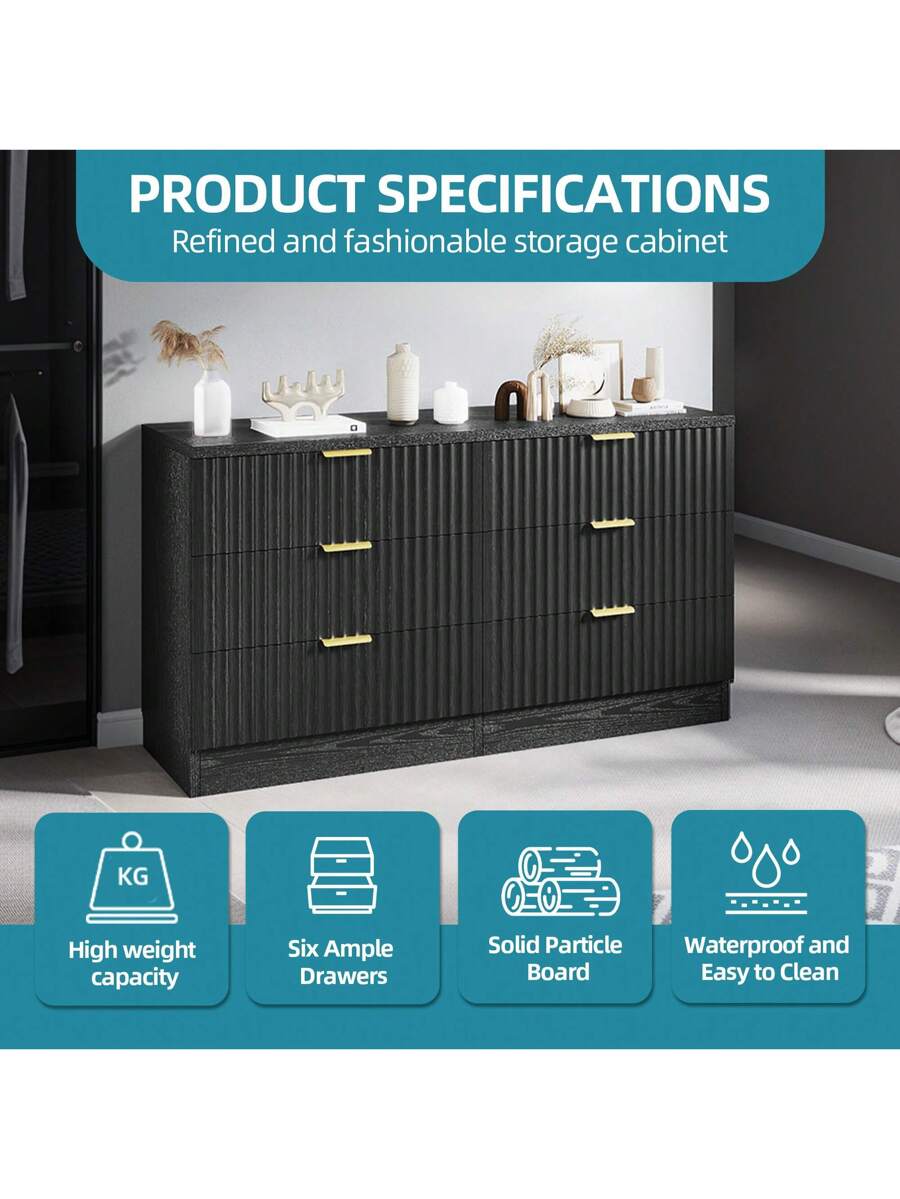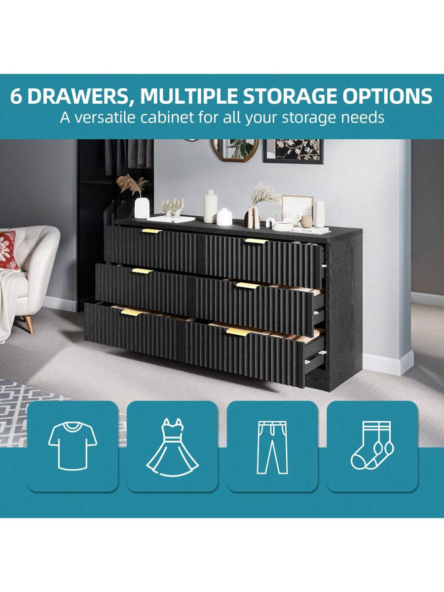 White/Black/Natural/Brown 6 Drawer Dressers, High Gloss White Dressers Drawers With Fluted Panel, Wide Versatile TV Stand Cabinet Table For Kitchen And Office